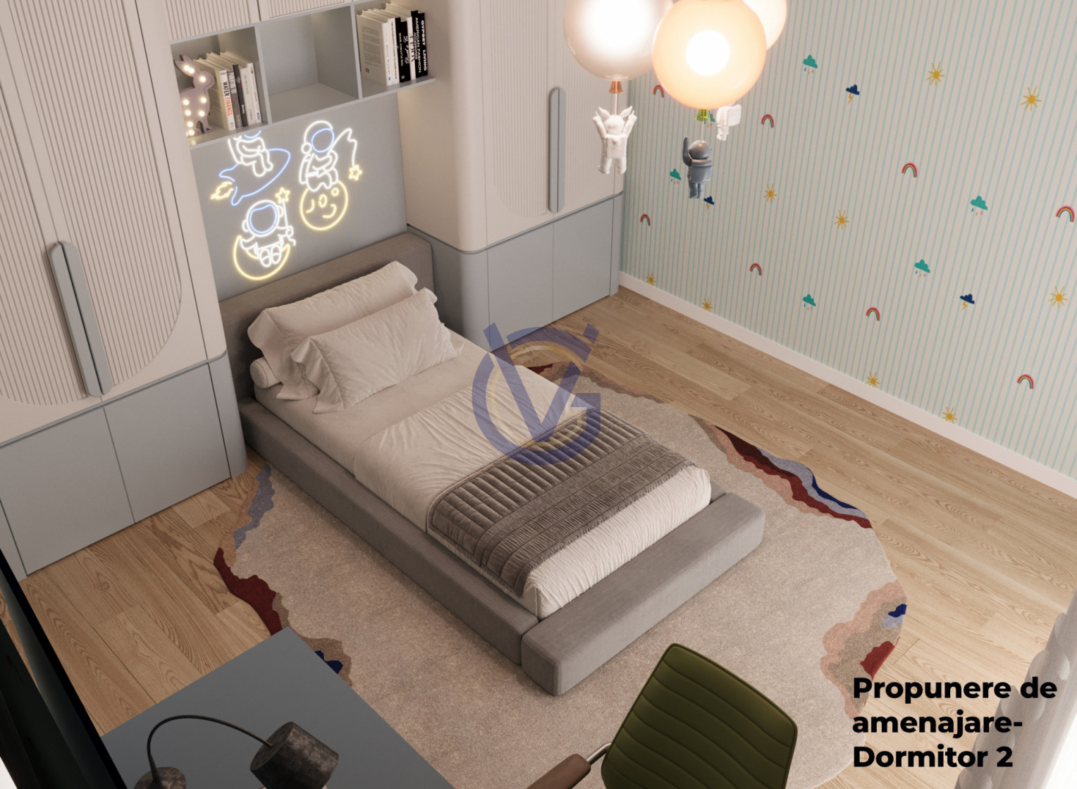 • Copiii au și ei intimitatea proprie, două dormitoare (13 si 16mp), cu baia lor (7mp) și terasa separată. Își pot vedea de propriile activități, fără să deranjeze restul familiei.