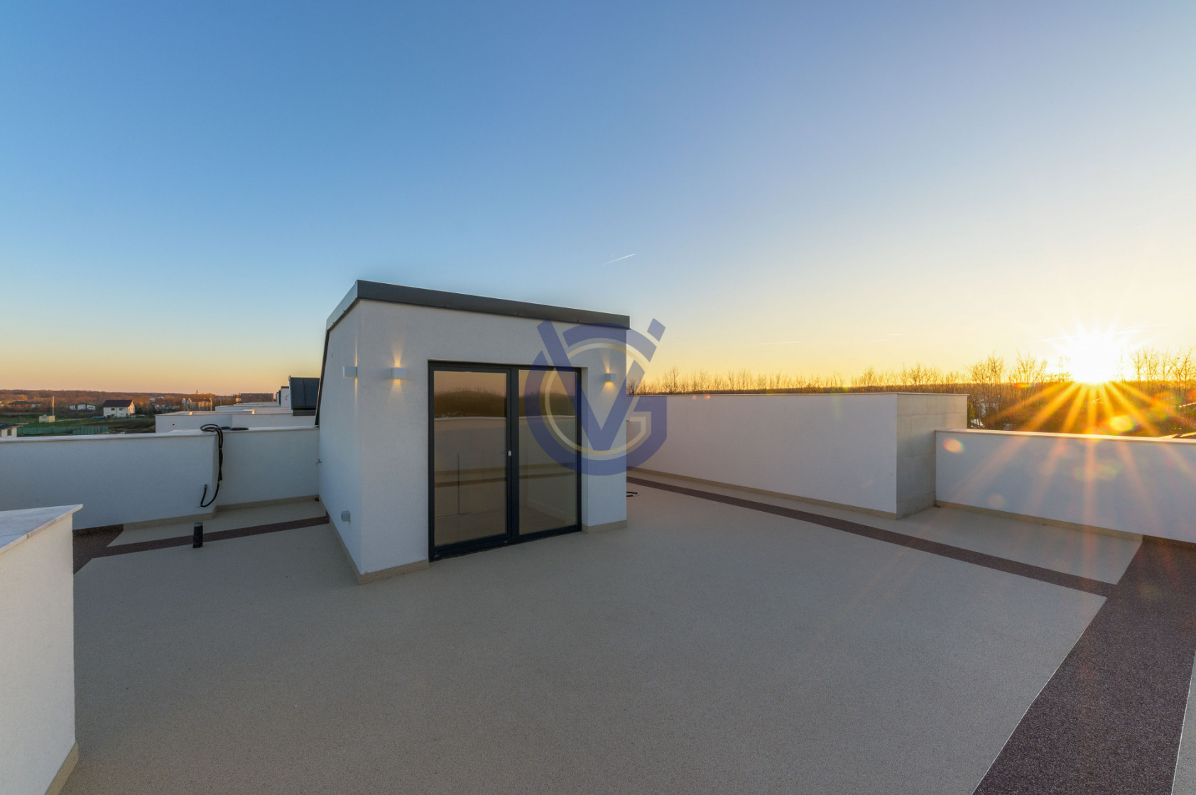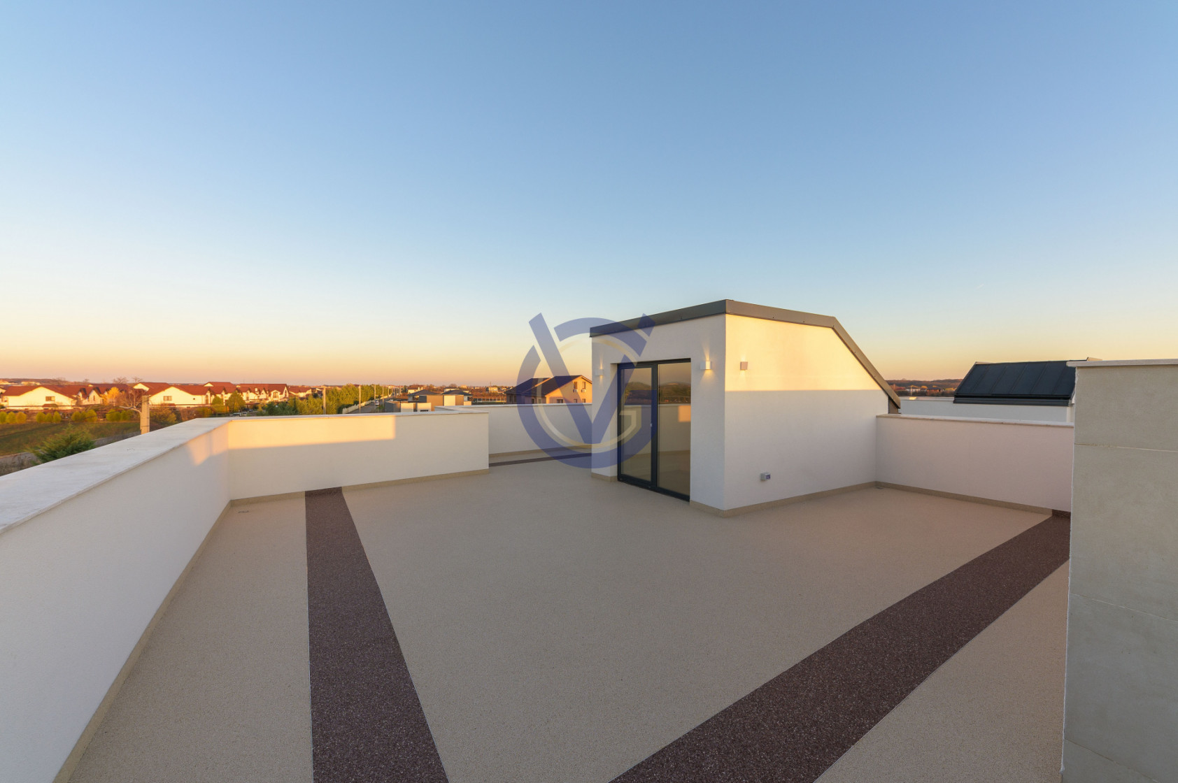 Si… să mai urcăm un nivel! Terasa! Daaa, terasa ta de 76mp! Ia gândește-te cum este să ai o asemenea terasă, de dimensiunile unui apartament generos de 3 camere! Un loc în care te vad doar păsările care zboară pe deasupra. Vrei să faci plajă? Vrei să îți amenajezi un jacuzzi? Vrei un loc în care să-ți strângi prietenii la o petrecere de vară, sub cerul înstelat? Câte case îți oferă un asemenea loc, pe care să-l amenajezi exact cum ai visat?